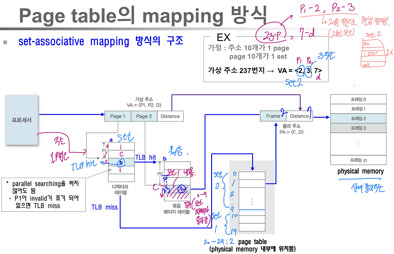 => set table을 통해 원하는 page table entry의 위치 정보를 쉽게 파악 가능~!